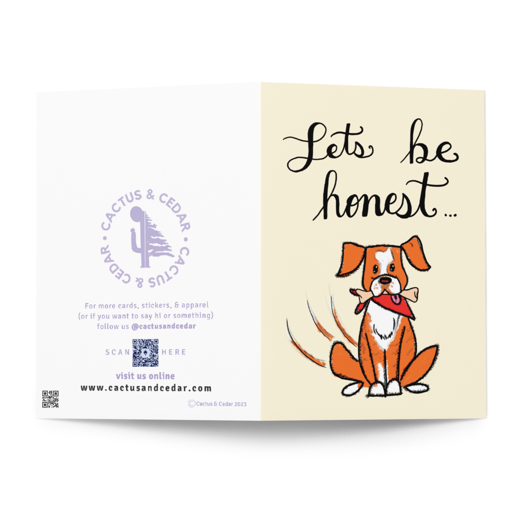 Outside: "Let's Be Honest..." Illustration of a dog with a bone