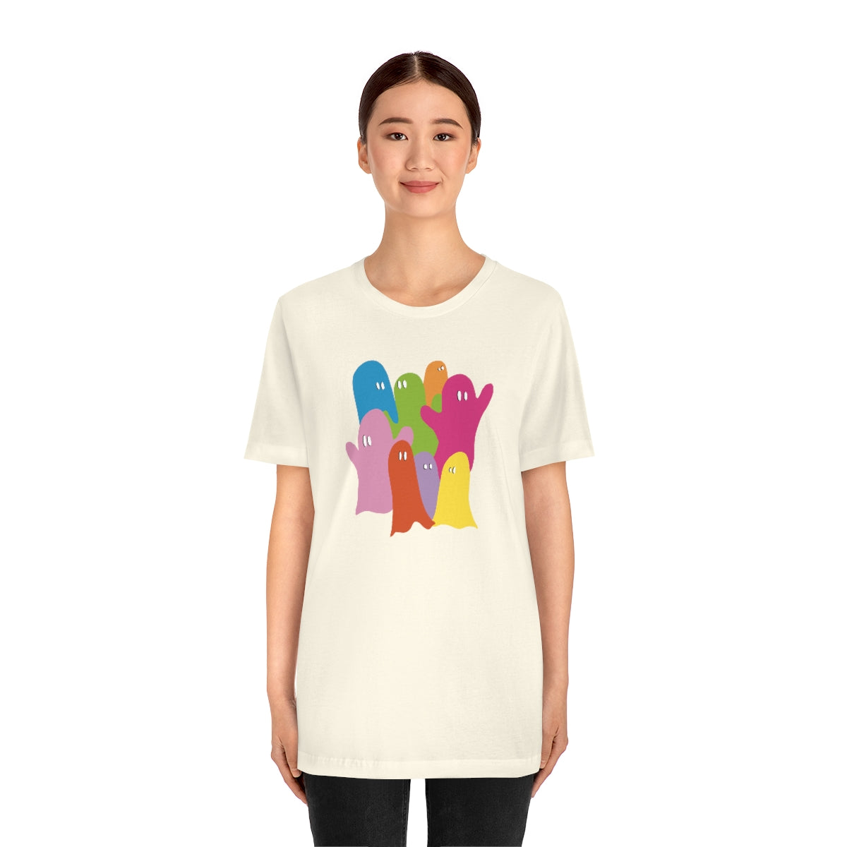 Our minimalist "Ghosts" Shirt is our fun take on pastel halloween colors! Pair it with jeans and BOOM, you're in the halloween spirit!